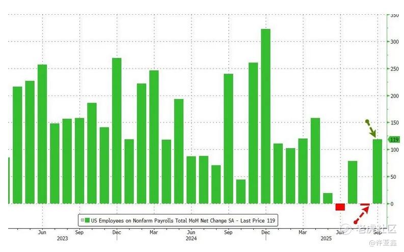 数据显示,美国9月非农就业人口增长11.9万人,是预期5.1万的两倍多,但与此同时,8月份新增就业人数从增长2.2万人下修2.6万,至减少0.4万人,7月和8月非农就业人数合计下修3.3万人。