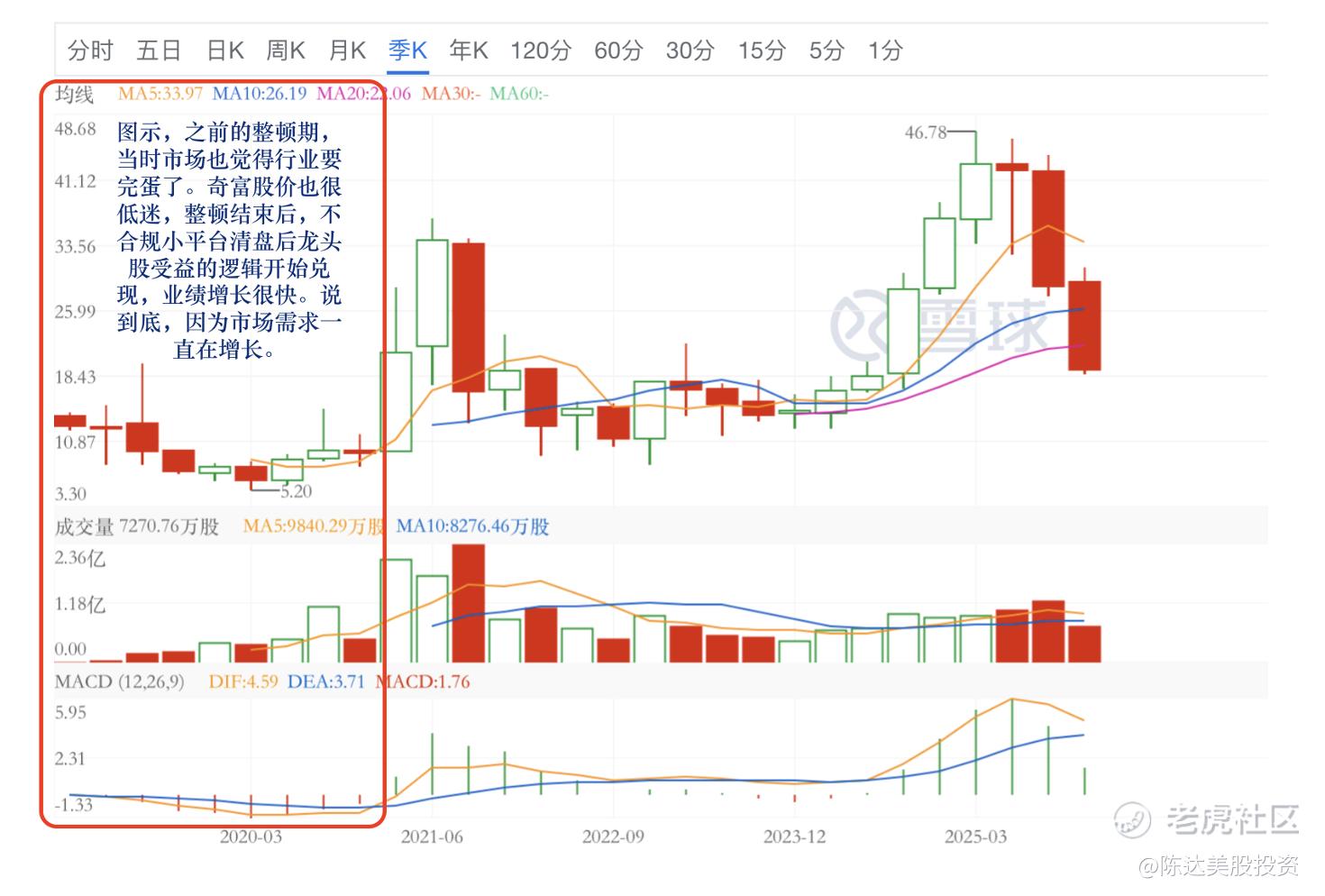 行业监管影响下的短期调整,不改变公司的长期价值;这事几年前已经发生过一次,我认为还会再发生一次。keep long。行业ups and downs那么多年筚路蓝缕,而对奇富我仍然比较相信,这是一家成熟的金融科技公司,有穿越周期的能力。每一次调整之后,奇富最终都会变得更好股价更高,有目共睹,我相信这一次也不会例外。