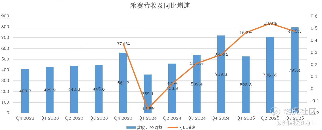 从三季报来看,禾赛依然保持了高速增长,当季营收近8亿,同比大增47.5%: