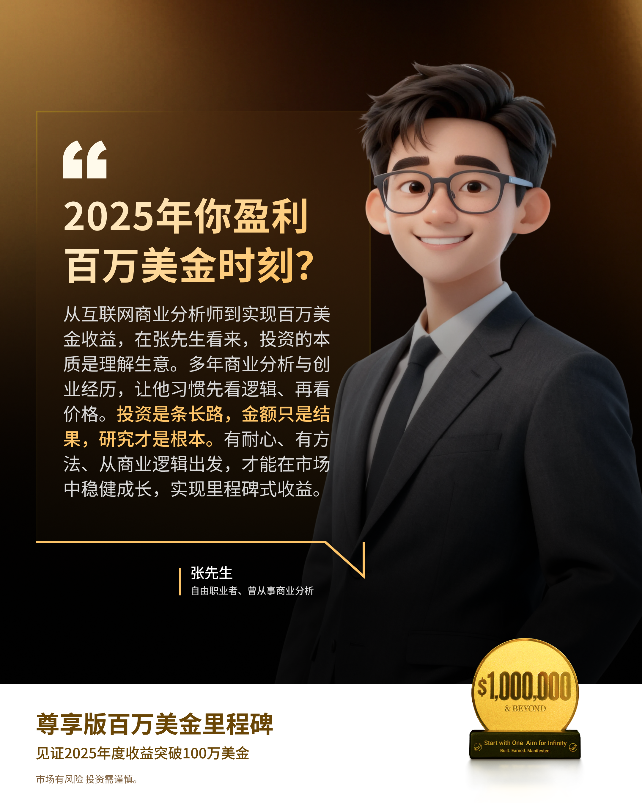 张先生的故事告诉我们:投资是条长路,金额只是结果,研究才是根本。有耐心、有方法、从商业逻辑出发,才能在市场中稳健成长,实现里程碑式收益。
