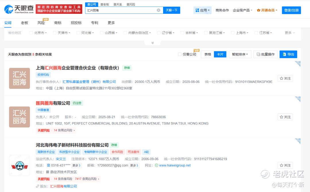 天眼查一查,原来汇兴丽海今年8月刚刚成立,十有八九就是为了给公司当基石成立的。