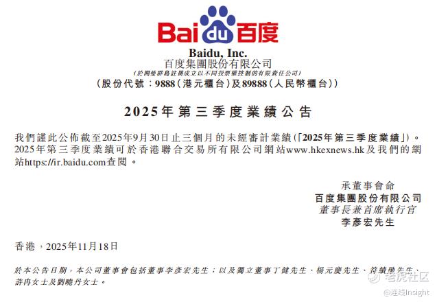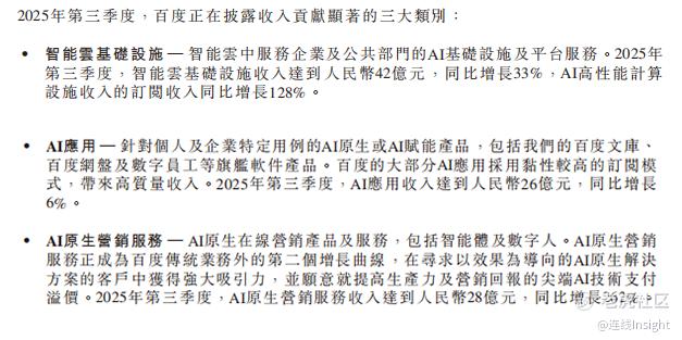 今年的三季报,百度一改往日将AI业务纳入整体营收框架的做法,首次披露了AI业务收入情况,百度的AI转型进程或将自此次报告之后被展现得更加清晰。