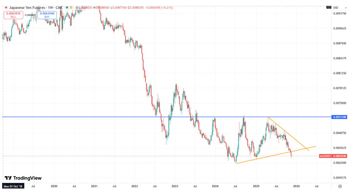 考虑到日本政坛的相对复杂性以及高市“傀儡”地位,这种一方面政治极右翼策略,一方面财政极度宽松的想法,说明要么是背后的麻生势力默许的,要么就是抛砖引玉失败后将牺牲掉高市。但无论是怎么样的路径,日元都将在一段时间内保持明显的压力,尤其是近期美元指数表现还不错的环境下。这也解释了,为什么在比特币和美股上周均大幅下跌的环境下,日元也保持了弱势局面。