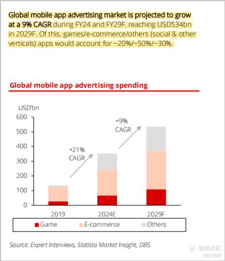 Q3,BIGO Ads业务实现1亿美元的季度收入,同比增长33.1%,环比增长19.7%。DBS星展银行11月发布的行业分析指出,全球移动应用广告市场预计以9%的年复合增长率增长,到2029财年将达到5340亿美元。在这个背景下,BIGO Ads的增速明显快于行业平均水平。