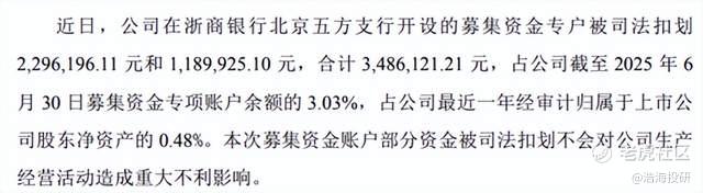 值得关注的是,公司于11月19日发布公告,其募资专户被司法划扣了348万多元。