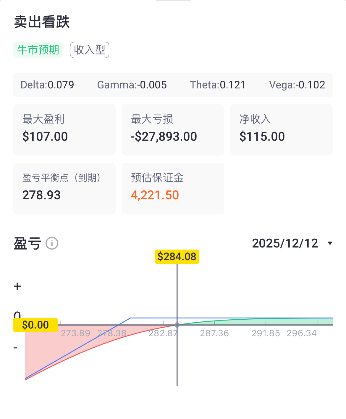 合约构建:卖出一张2025年12月12日到期、行权价为280美元GOOGL看跌期权。
