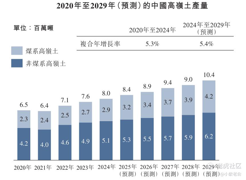 受技术创新、政策支持以及全球贸易扩张的推动,中国高岭土产量正在稳定增长。根据弗若斯特沙利文的数据,2020年至2024年,中国高岭土产量总体呈增长趋势,尤其在2022年和2024年,增速显著增快。预计至2029年,中国高岭土产量将达到1,040万吨,2024年至2029年的复合年增长率为5.4%。由于高岭土在传统领域以及新兴领域高端产业的应用与日俱增,中国高岭土矿石产量将持续增长。