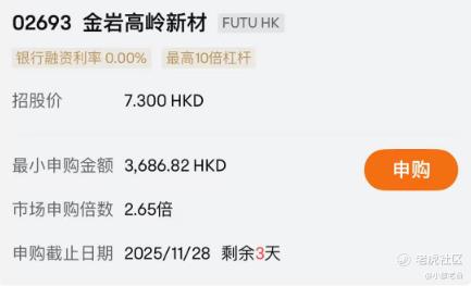 目前申购倍数是2.65倍,看着人气一般,主要是因为今天才刚开始招股,前面的新股资金也还没有释放,预计最终申购至少会超过2000倍。