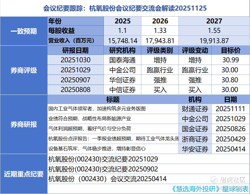 会议纪要跟踪:杭氧股份会议纪要交流会解读20251125