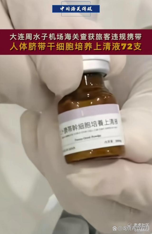 近年来,我国海关频繁发现违规携带人体组织生物制剂的案件。例如今年10月份,大连周水子机场海关就在旅客行李及随身衣物中,查获了72支人体脐带干细胞培养上清液,旅客自称“代购”。这种物质属于生物制品半成品,是当下医美抗衰领域的新风口。