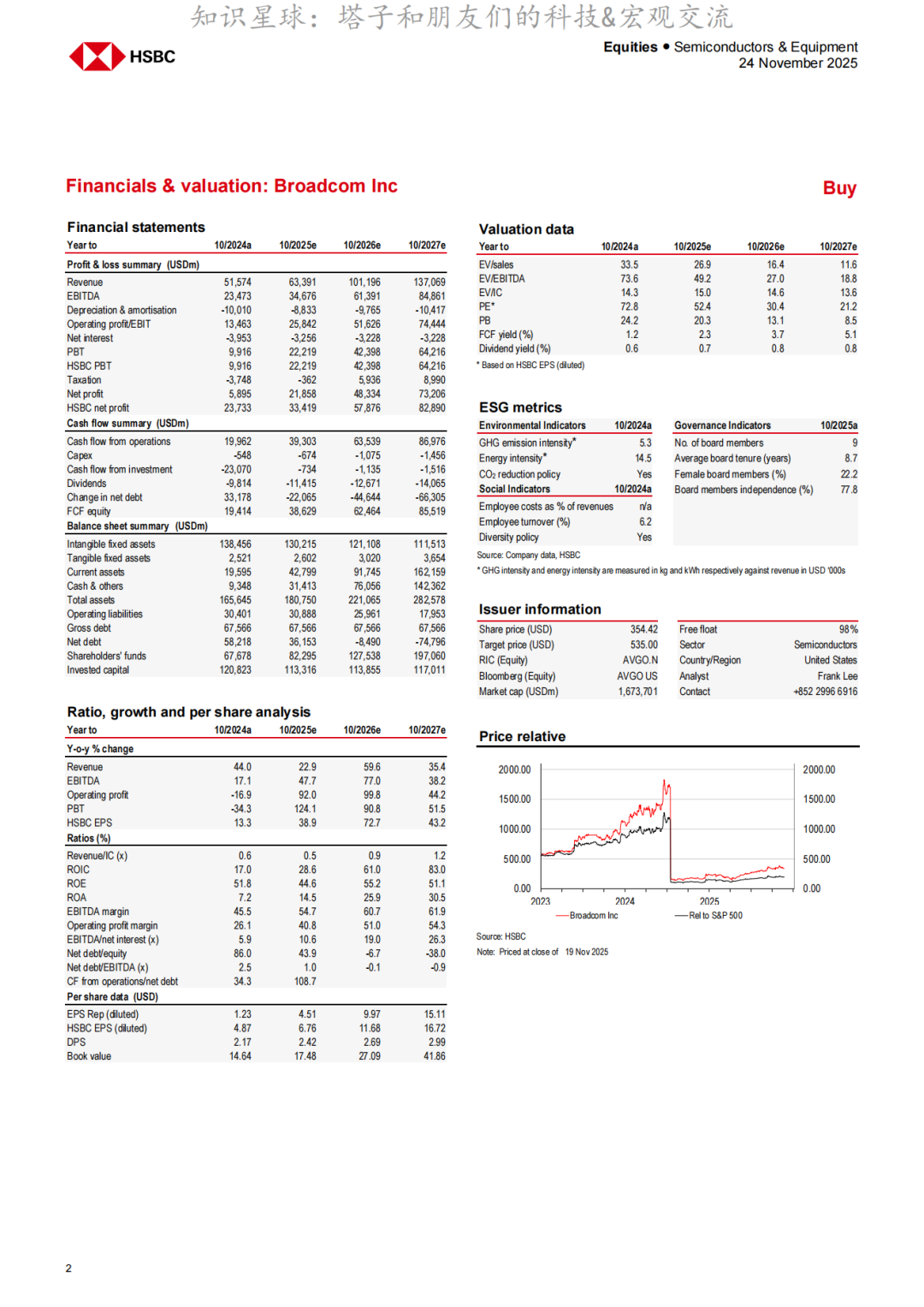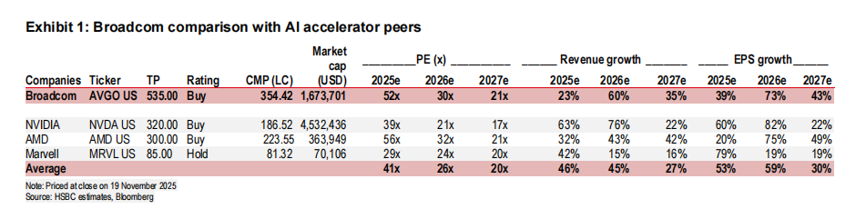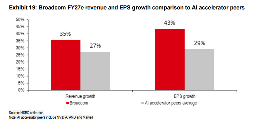 汇丰在报告中指出,由于谷歌TPU大幅放量以及台积电的先进制程供应倾斜,预期明后年博通的EPS会远高于汇丰此前预期,故大幅上调目标价至535。