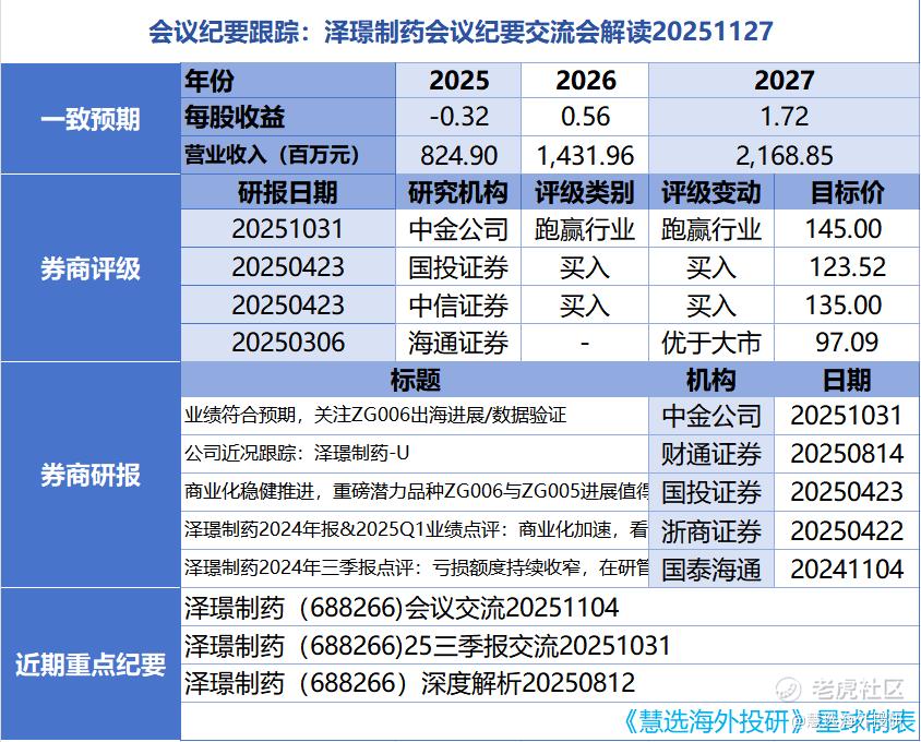 会议纪要跟踪:泽璟制药会议纪要交流会解读20251127