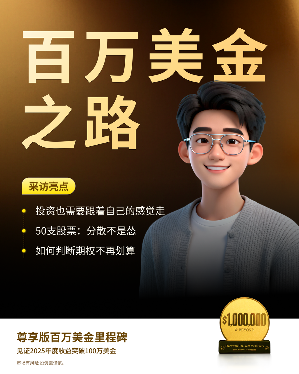 本期的「百万美金之路」主人公是胡先生,90 后投资者,最初在互联网行业工作,因为境外期权的关系接触港美股,并在多年的试错、爆仓与反思中逐渐走出属于自己的投资路径。他从最初“跟着同事买票”的新手小白,一路摸索到熟练运用期权寻找高弹性机会,再到回归以正股为主的稳健框架。科技、消费与中概股是他的主战场,美团与阿里更是他仓位切换与风险管理的重要实战样本。