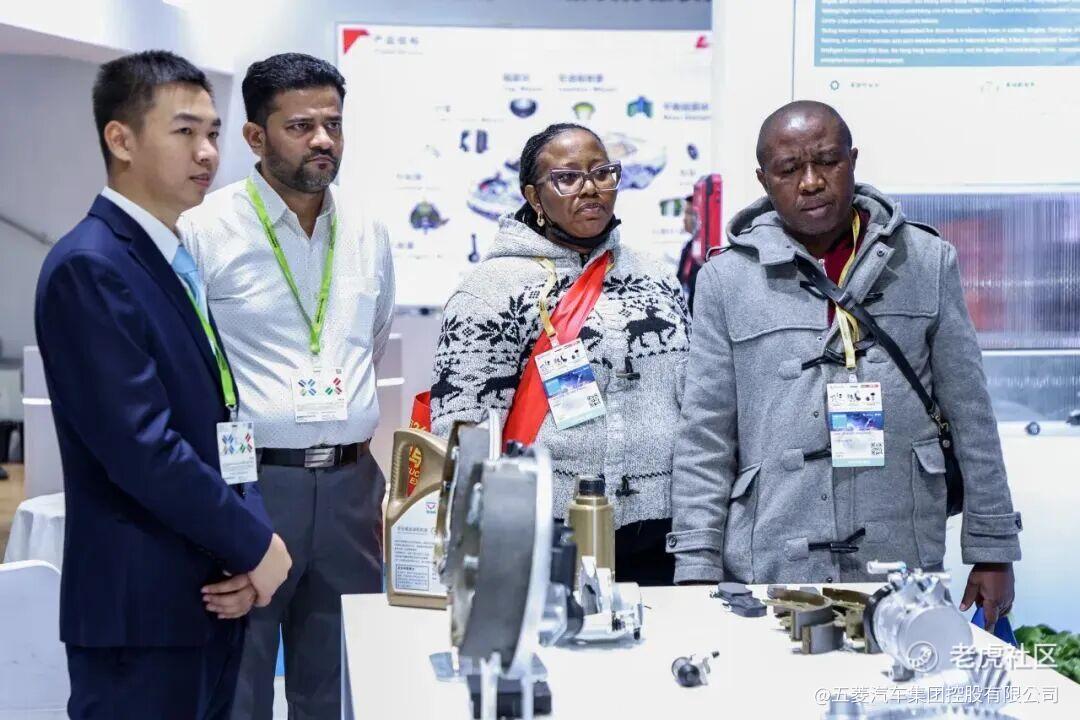 来自印度、印尼、泰国、俄罗斯、尼日利亚等多个国家和地区的行业伙伴及潜在客户,现场咨询五菱工业展品各类信息,交换名片并表达合作意向,与五菱工业共同探讨行业前沿科技及适配方案。