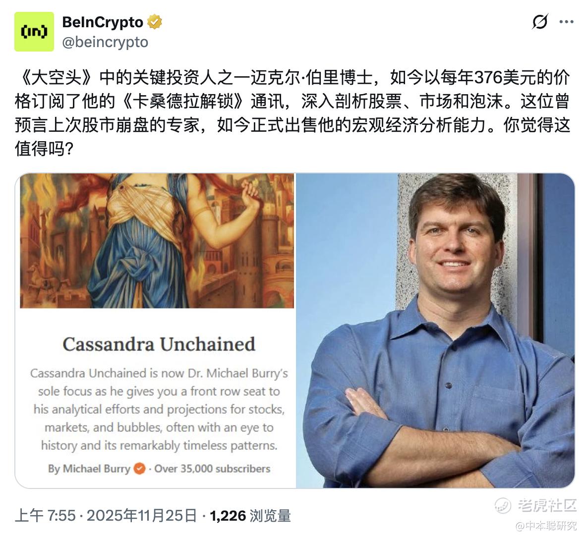 连迈克尔·伯里,就是电影《大空头》里那个逆着所有人做空次贷的传奇大佬,居然也开!付!费!群!了!