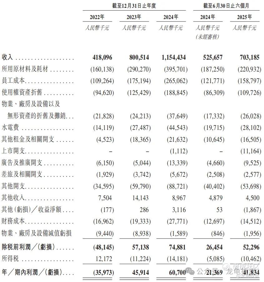 年内亏损/溢利:2022年净亏损3597.3万人民币,2023年净利4591.4万人民币,2024年净利6070万人民币;截至2025年8月31日止最近12个月净利8116.5万人民币。