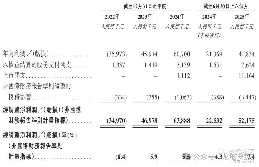 经调整后净亏损/净利润:2022年经调整后净亏损3497万人民币,2023年经调整后净利4697.8万人民币,2024年经调整后净利6388.8万人民币;截至2025年8月31日止最近12个月经调整后净利9353.1万人民币。