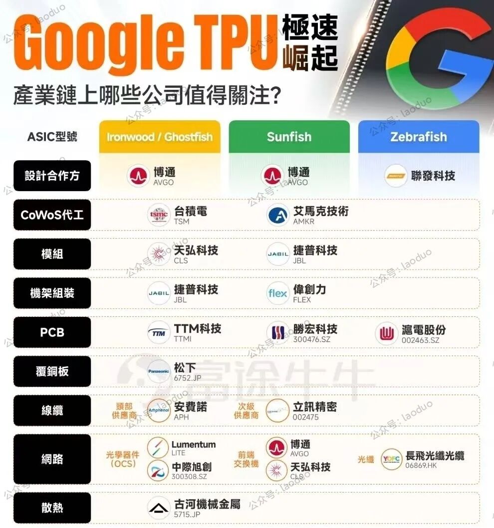 这里对应“光纤组件 / Next-gen networking”,也是谷歌大模型扩容、数据中心扩线必需的环节。