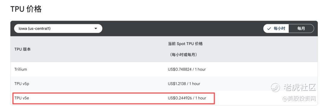 用 谷歌云 的公开定价对比就更直观了:同一个地区,一颗 H100 的 Spot 价格是 2.25 美元/小时,而一颗 TPU v5e 只要 0.24 美元/小时。单芯片的计费价格,差 9 倍。