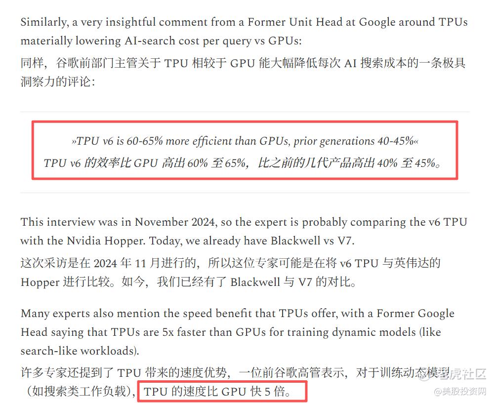 更关键的是,美股投资网获悉,谷歌已经把 TPU 带进了高频交易公司、银行、国防部门 这些安全要求最严格的场景。能够在这些体系中本地落地,并通过最严苛的安全审查,这就意味着 TPU 已经跨过了 GPU 长期难以跨越的门槛:数据隔离、超低延迟、可审计性和主权安全。
