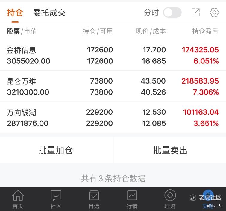 今天十一月收官,经历上周快速下跌后,本周整体是在反弹的,但量能却越反弹越小,今天只剩1.6万亿了,这种情况下,上涨靠的还是筹码断层后的情绪延续,也就是超跌反抽,那么反抽接近20日线,就是筹码重压区了,如果下周不放量的话,那越接近20日线压力就会越大,操作上还是等后续二次调整,再伺机寻找机$万向钱潮(000559)$ $金桥信息(603918)$ $昆仑万维(300418)$ $视觉中国(000681)$ $东百集团(600693)$