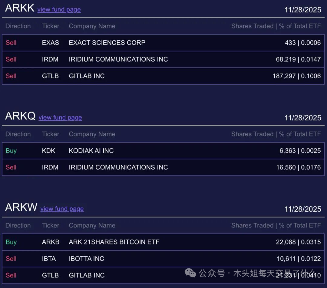 卖出4.3万美元EXAS这已经是清仓的赶脚。卖出140万美元IRDM,基本上也是每天都在卖出的节奏。卖出760万美元GTLB,卖出50万美元IBTA