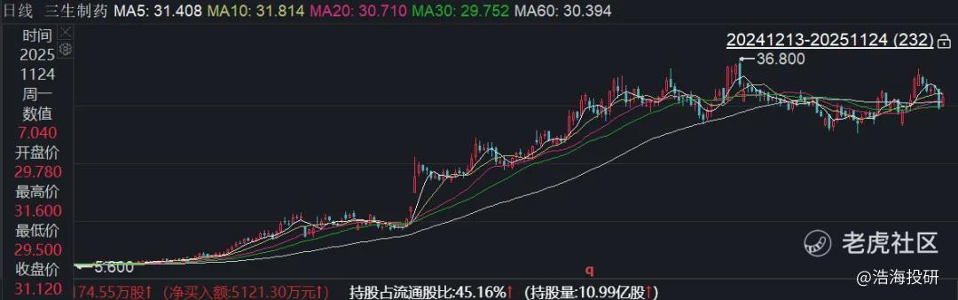 三生制药今年以来股价变动趋势图 来源:同花顺iFinD