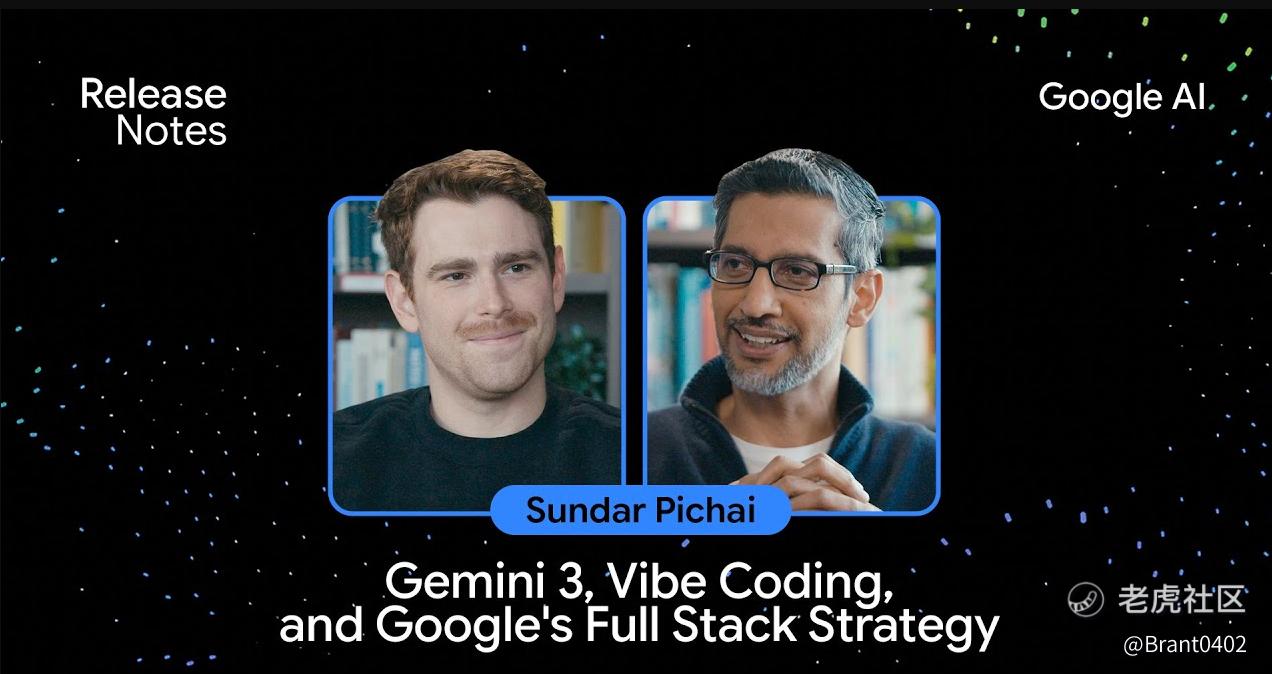在11月26日接受Google DeepMind团队的Logan Kilpatrick采访时,谷歌CEO皮查伊详细阐述了谷歌如何利用全栈优势和长期布局承接这一轮爆发: