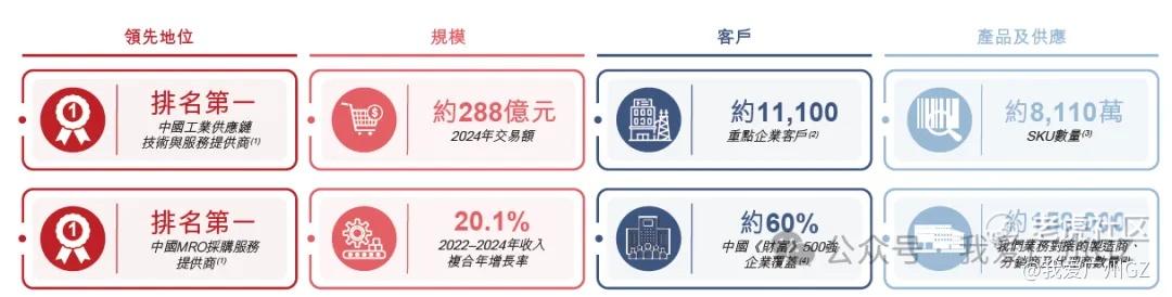 中国最大:第一,遥遥领先,MRO工业品交易额288亿,是第2名的3倍,覆盖60%的中国《财富》500强企业+40%的在华全球500强,中国那一半最有钱的大公司,买润滑油、买劳保手套、买生产物料,都找的京东工业