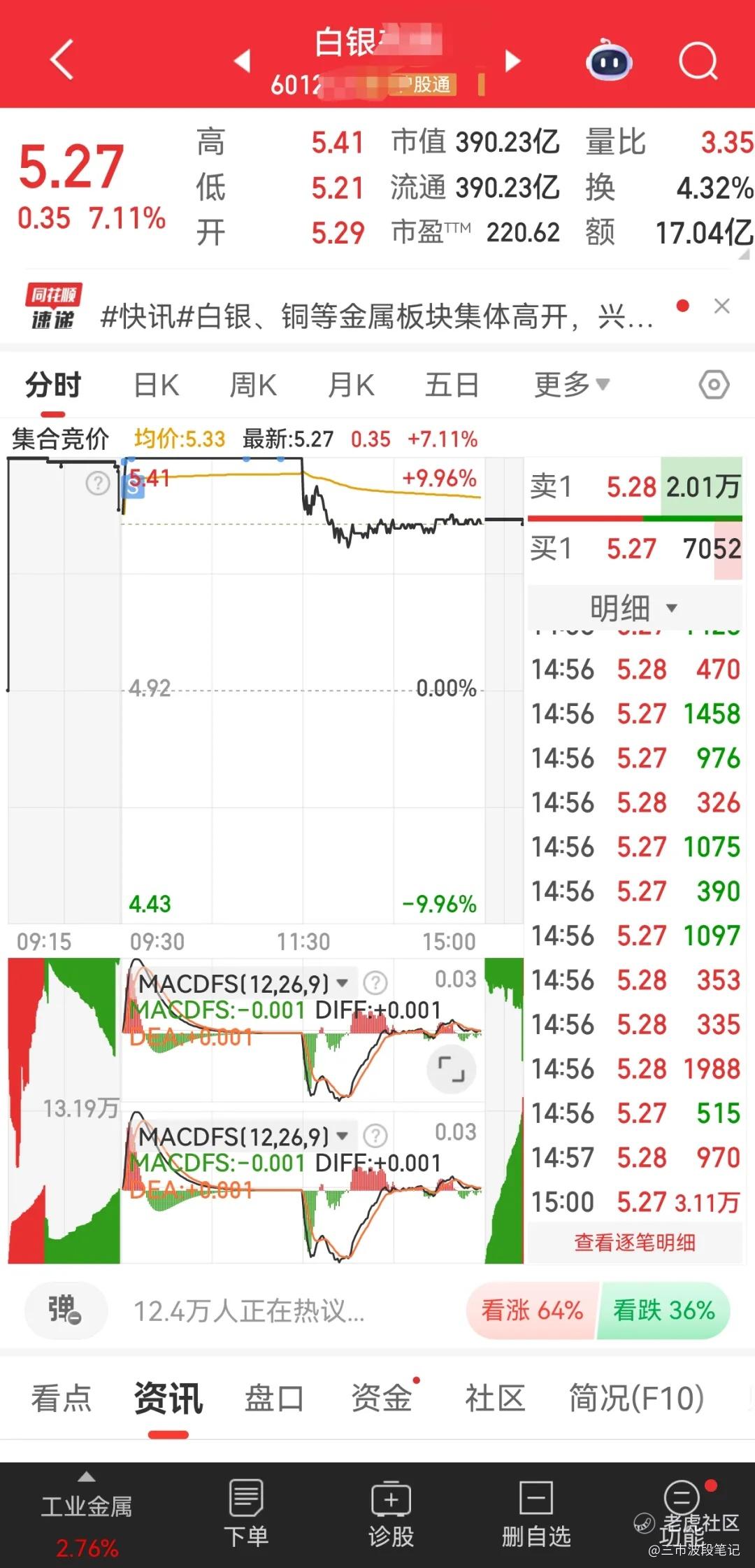 所以,就算有色明天跌了也不要急,慢慢做T,做低成本就好。