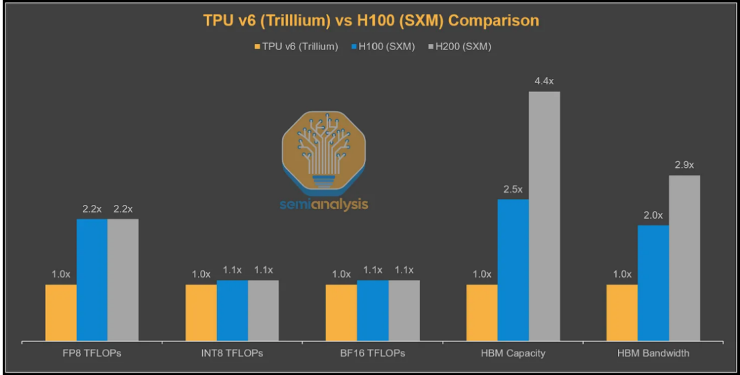 近日,有关谷歌TPU和英伟达GPU的讨论争议非常多,著名的半导体分析发文解读了有关谷歌TPU和V7的面貌并且做了对比,笔者这里概况摘录一部分: