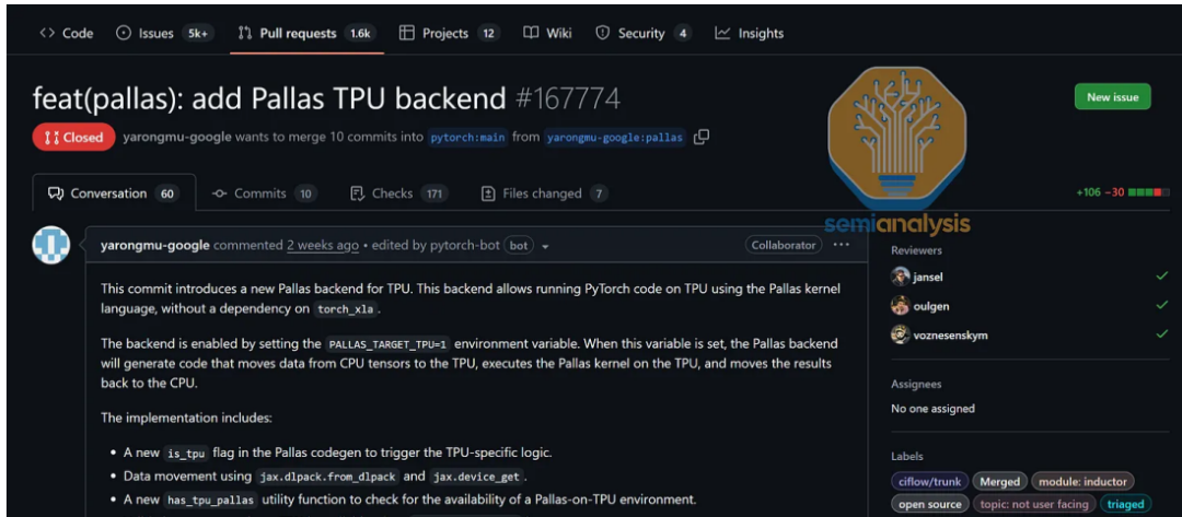 这一转变主要为了满足Meta等客户的需求——他们希望使用TPU但不打算迁移到JAX。新的PyTorch后端将与torch.compile、DTensor和torch.distributed等API深度集成。