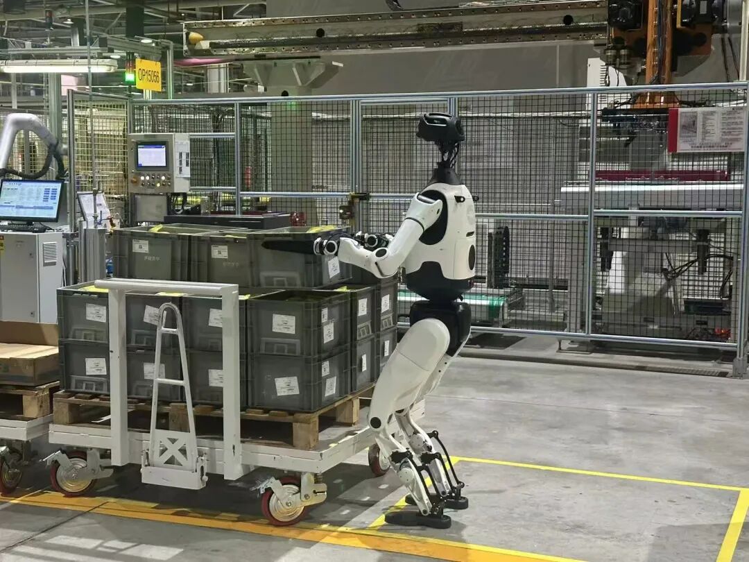 具身天工在工厂搬箱子
