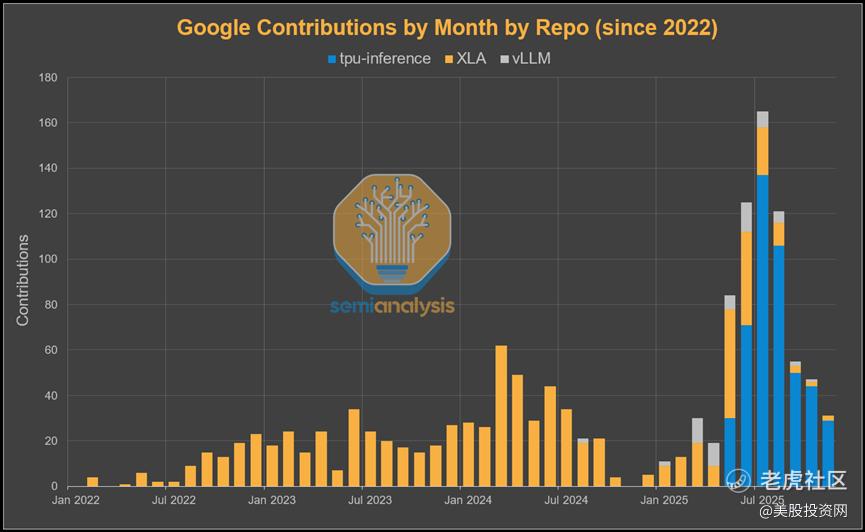 过去外界不采用 TPU 的最大痛点是软件生态。谷歌长期坚持 JAX,而开发者普遍使用 PyTorch + CUDA。