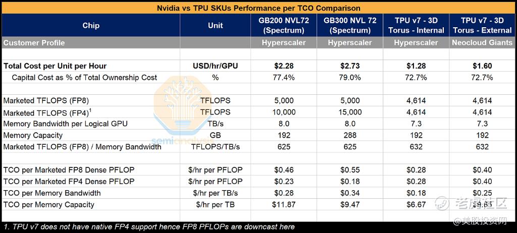 即便通过云租赁,采用 TPU 的 TCO 仍比采购 GB200 低约 30%
