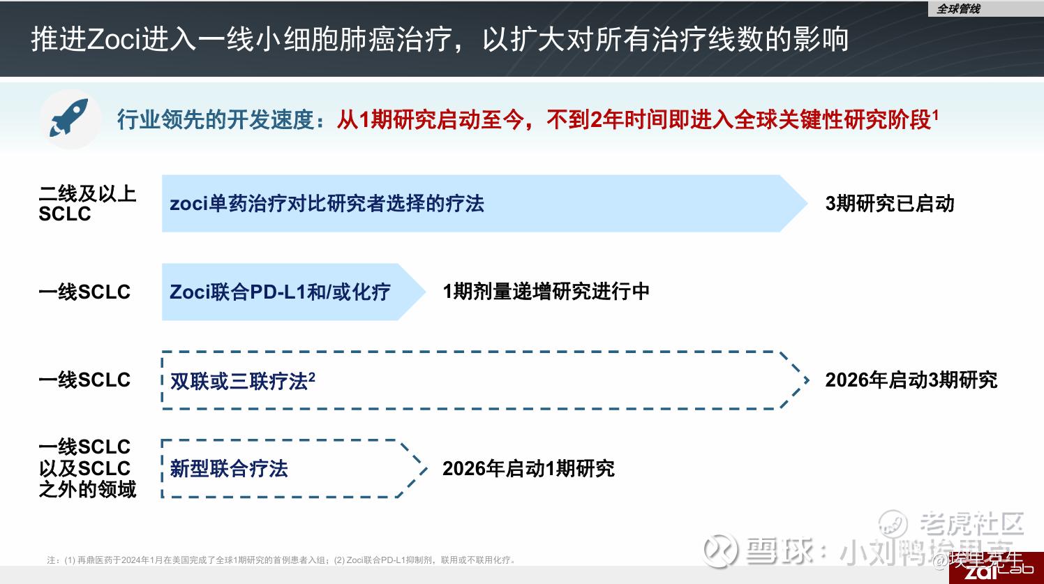 III、ZL1310,目前再鼎力捧的未来的当家花旦。一方面他的数据很好,有成为神药的潜质,另一方面再鼎拥有全球权益,做的是全球多中心全球申报,这个药注定要出海的。再鼎医药对这款产品的定位是高端、全球化。其临床研究从一开始就在美国、欧洲和中国同步开展,并且积极与FDA沟通,已获得了用于治疗小细胞肺癌的孤儿药资格和快速通道资格,虽然竞争者众(如安进的双抗、信达和恒瑞的DLL3 ADC等),但ZL-1310目前在DLL3-ADC赛道临床进度领先;真正的价值考验在于即将开展的全球关键注册性III期临床试验。该试验计划入组约665例复发SCLC患者,主要终点包括客观缓解率和总生存期,预计2028年末完成。