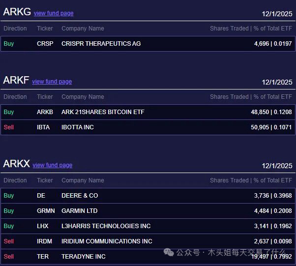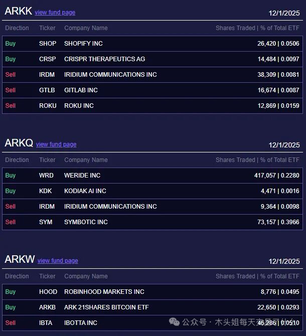 买入170万美元DE、买入100万美元CRSP、买入100万美元HOOD,算是常规操作,跌了就买的那种。买入2.5要美元KDK,没想到木头姐还在买,只是这股愣是起不来。