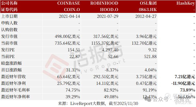 同行业IPO可比公司:COINBASE、ROBINHOOD、OSL集团