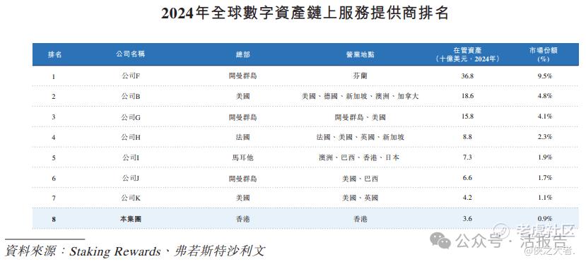 公司于全球数字资产链上服务提供商中排名第八,并截至2024年12月31日亦是亚洲最大的数字资产链上服务提供商。