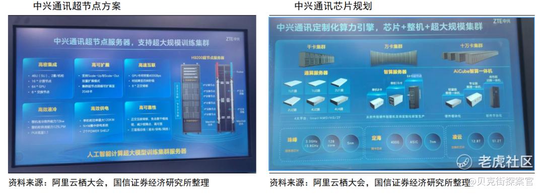 在今年9月阿里云栖大会上,中兴通讯展示了下一代规划的51.2T交换芯片。同时展出了单机支持64张GPU的超节点服务器,支持Scale-Up与Scale-0ut双重扩展模式,具备业界领先的集成度与扩展能力,支撑打造软硬协同、以网强算、开放解耦、高效高稳的万卡、十万卡超大规模智算集群。
