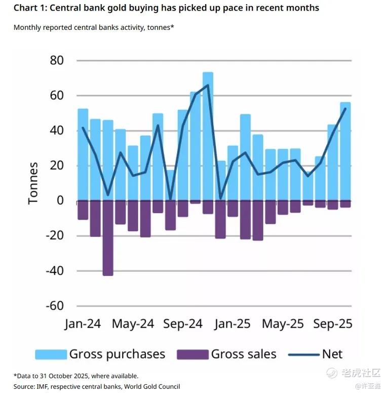 根据世界黄金协会的统计数据,10月各国央行对黄金的需求依然强劲,净购金量达53吨,环比增长36%,创下今年迄今为止最大的月度净需求,延续了全年的强劲态势。购金行为仍集中在少数央行,波兰国家银行当月再度活跃,成为领头羊。