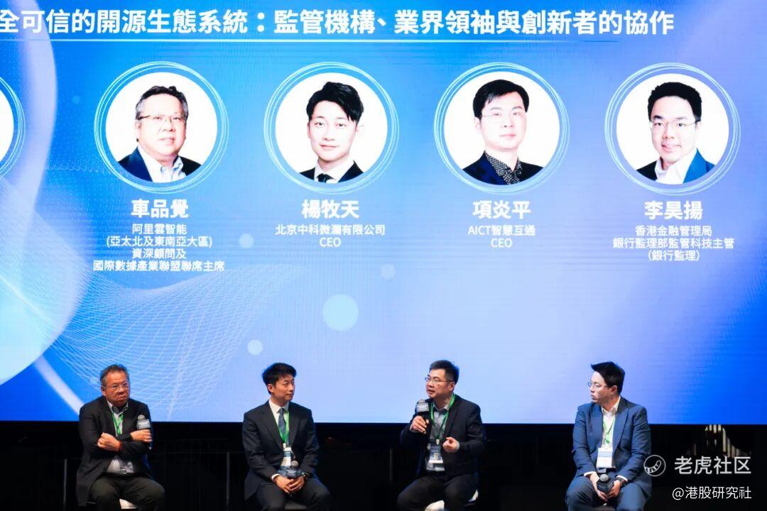本次论坛以“开源、协作、赋能”为核心理念,覆盖开源技术研发、应用落地、生态建设等多个领域,作为多元化交流平台,汇聚产业、学界与科研力量,共同探讨在香港构建安全、可信、活跃的开源技术生态,以开源创新赋能各行各业的数字化转型及智能化升级。在圆桌讨论环节,项炎平博士与北京中科微澜有限公司 CEO 杨牧天、阿里云智能资深顾问车品觉及香港金融管理局银行监理部监管科技主管李昊扬,聚焦“安全可信的开源生态系统构建”这一核心议题展开讨论。