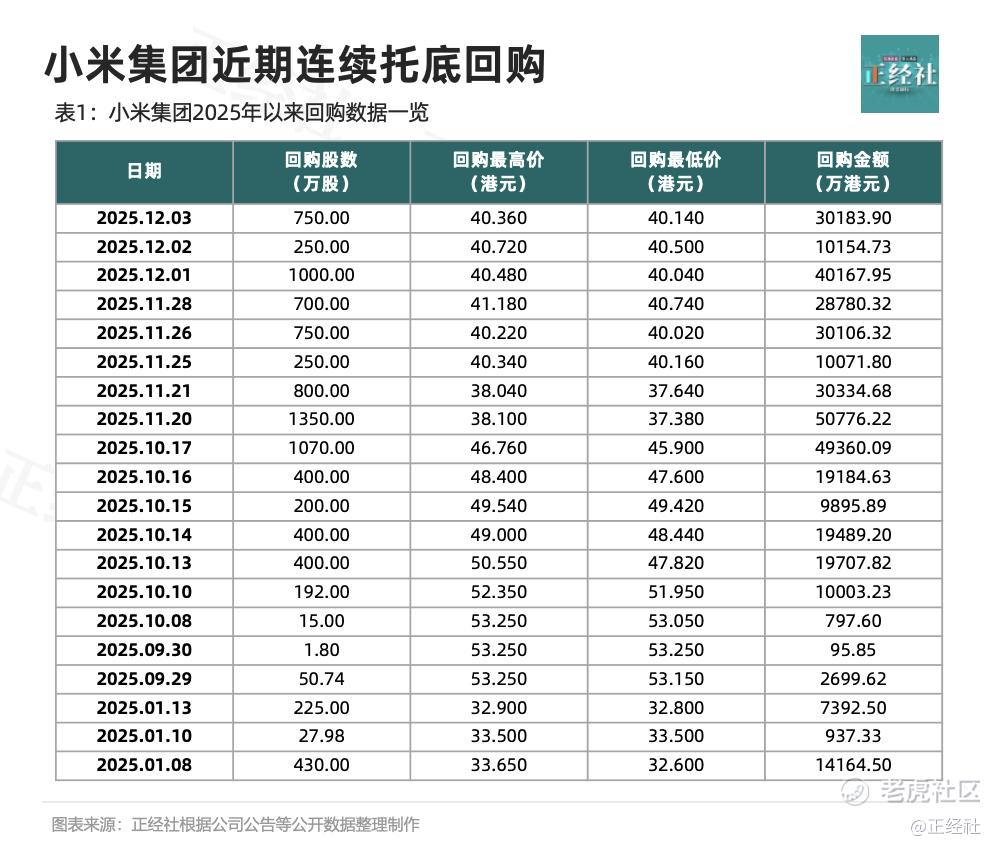 随后,回购几乎没有间断过,金额从1亿多港元到4亿多港元不等,雷军亦曾亲自下场增持,真金白银宣示信心。