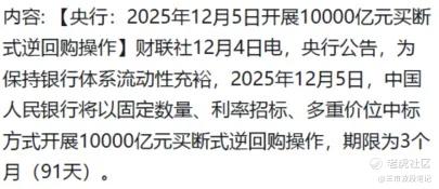 毕竟央行历史上从未出现过单次规模达到 1 万亿元的买断式逆回购操作。该工具本来使用频率就极低,其规模通常在数千亿元以内。此次 1 万亿元操作属于史无前例的特大规模,性质接近短期 QE,主要用于跨年流动性管理与稳定债券市场情绪。