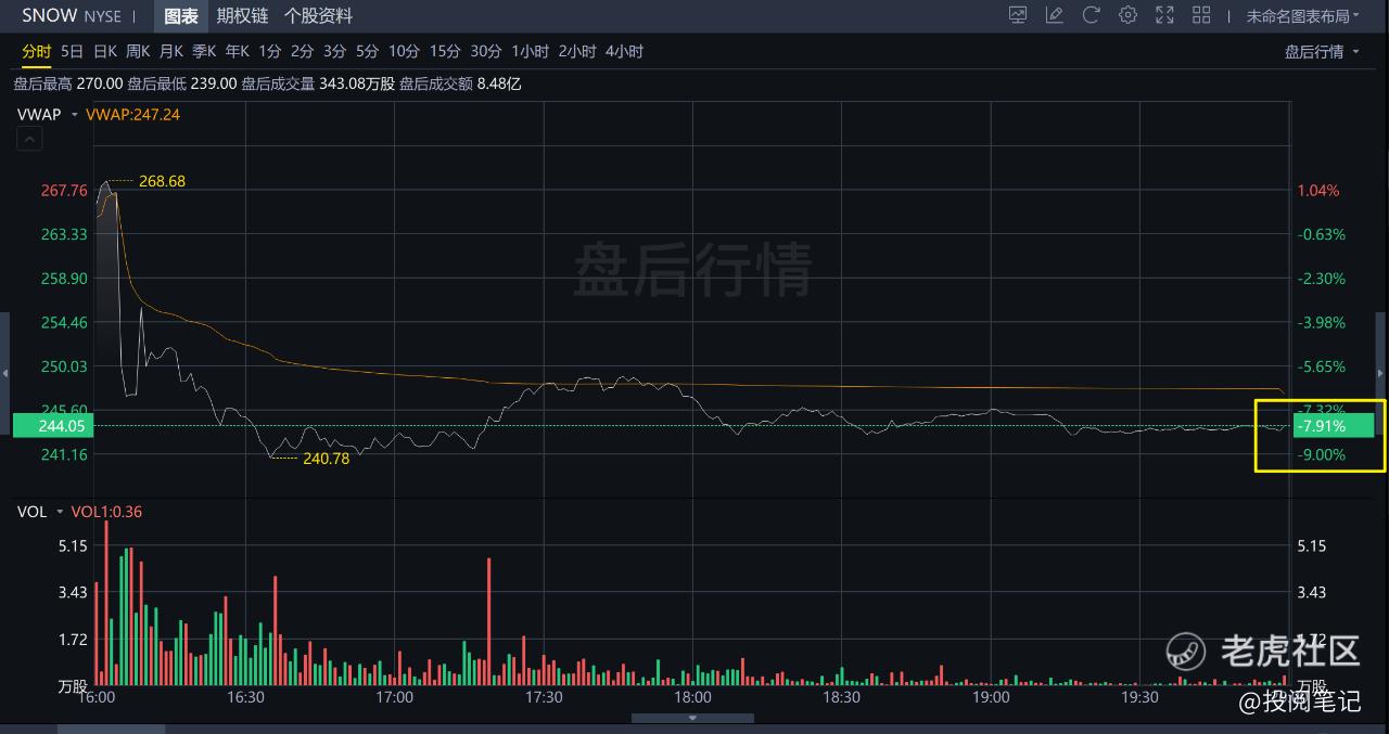 先来看看业绩公布后股市的表现,如下图所示,盘后股价-7.91%,如果按照股价表现来看,业绩是不及市场预期了,但是还是要自己看看该公司最新的业绩详情,接下来就看下该公司的最新业绩。