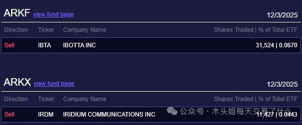 卖出360万美元IRDM、这两天还是有利好的,但是架不住木头姐就是要卖你。卖出140万美元IBTA、卖出50万美元ROKU。