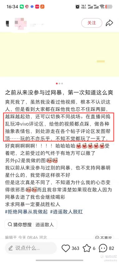 在所有受到波及的企业中,vivo与此事件的关系最为薄弱,但却遭受了最为极端的攻击。12月29日,vivo直播间异常涌入大量和产品无关的评论,评论数量高达平时的8.9倍,评论区个别煽动性、诋毁性评论被意外置顶;在社交媒体与公共评论区,大量有组织的极端言论开始泛滥。此外,还有谣言捏造企业高管与主播之间存在低俗、不堪的不正当关系,以此进行人格羞辱。