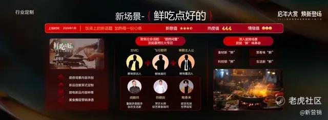 「鲜吃点好的」则是走进年轻人被闲置的厨房,通过重燃厨房的灶火帮助他们重启鲜活的生活,对于食品饮料、调味品、厨房用品等品牌均有种草空间。