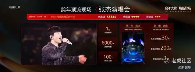 「张杰跨年演唱会」已经是连续第三年跟抖音合作了,2026年舞台将全面升级,作为内娱顶流实力唱将,张杰覆盖全网1亿粉丝关注,2025年跨年演唱会相关热点持续在榜长达30多天,表现出强大的长尾效应。此外,元旦假期期间,抖音还有「潘玮柏巡回演唱会抖音特别场」「林忆莲新年回响演唱会」等多种资源,适合品牌根据目标受众进行深度圈层渗透。