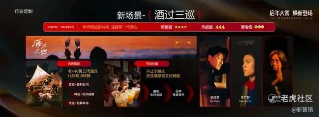 春节期间,巨量引擎也推出了多个以家庭为场景的内容IP,为不同垂直行业的品牌提供定制化的营销场景。「酒过三巡」以“喝一杯”为打开沟通的钥匙,老中青三代嘉宾在饭桌上通过举杯间的真诚对话,达成共鸣与和解,适合酒水品牌进行年轻人群沟通。